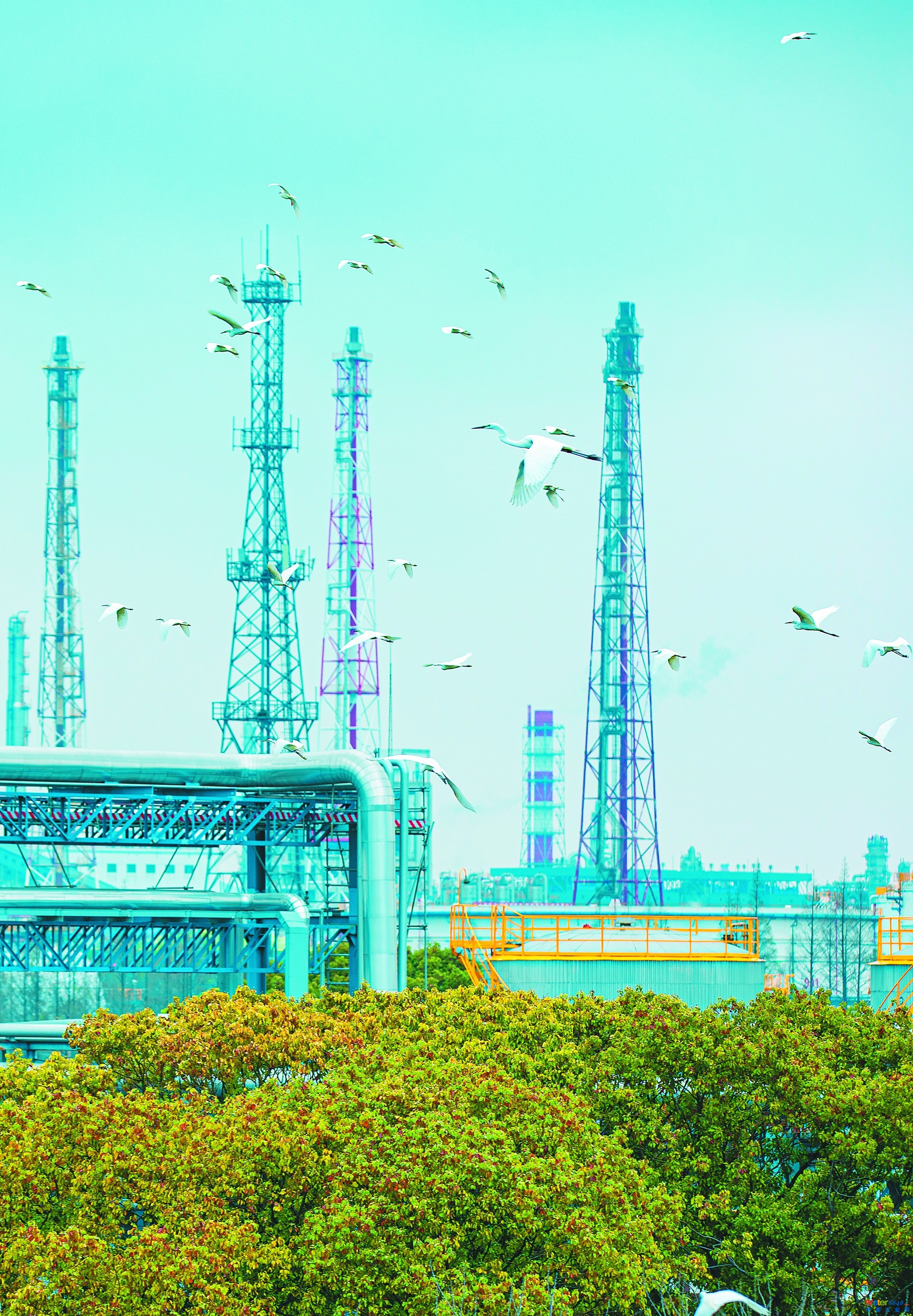 圖為鎮(zhèn)海煉化白鷺園,白鷺齊飛生態(tài)美。