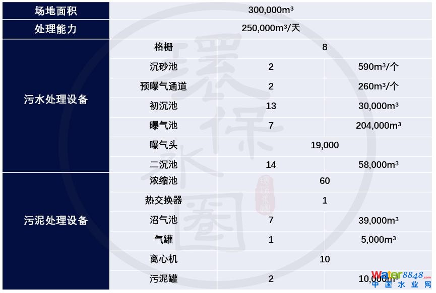亨利克斯達(dá)爾污水廠設(shè)施表