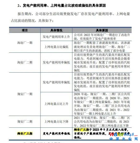 廈門環(huán)能在2024年6月下旬披露的審核問詢函回復(fù)內(nèi)介紹,翔安廠三期于2023年9月正式投入運(yùn)營(yíng),目前處于產(chǎn)能爬坡階段,發(fā)電產(chǎn)能利用率偏低。