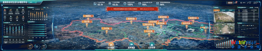 這一監(jiān)測報警事件,是“膠州市農(nóng)村生活污水智慧管控平臺”助力提升污水處理管理效率,建設(shè)美麗鄉(xiāng)村的一個縮影。平臺由“綜合概覽、指揮調(diào)度、安防態(tài)勢”三大模塊組成,推動膠州實(shí)現(xiàn)污水治理范圍區(qū)域監(jiān)測、全過程控制、全方位管理。
