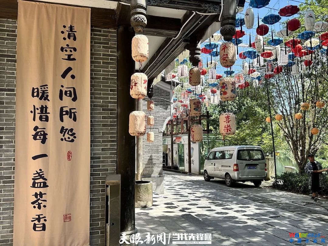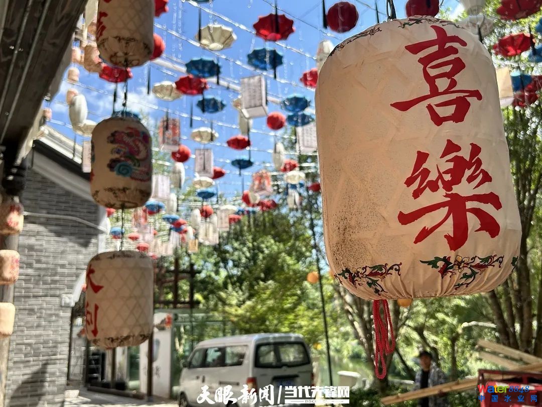 岸上,湖畔的同心步行街上掛滿了色彩各異的燈籠,沿湖一處正搭建圓形水上舞臺,湖面上靜靜泊著十幾艘?guī)镉未,這里將依托碧陽湖水景觀打造古韻十足、國潮風滿滿的開放式國風潮流生活街區(qū)——“同心國潮水街”。
