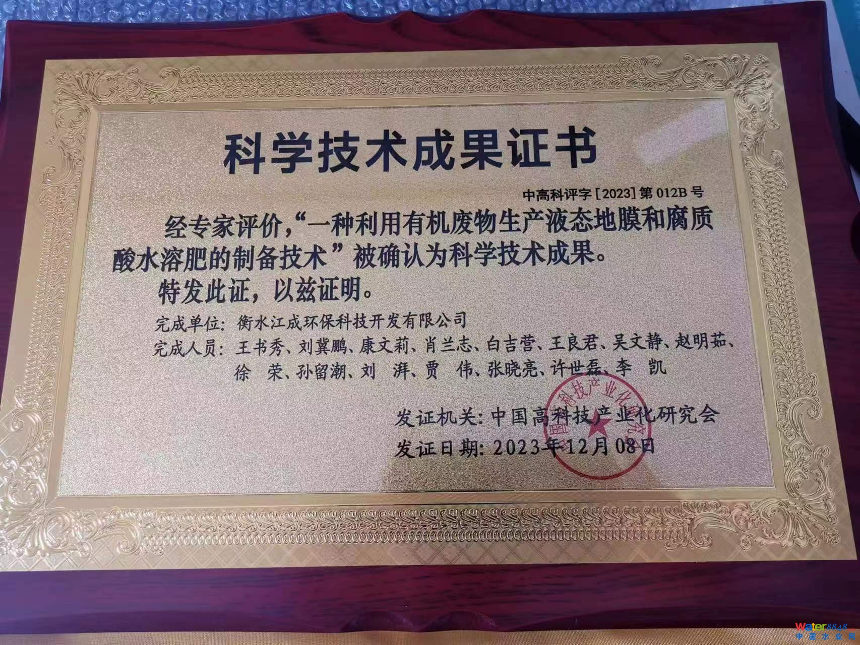 評委會委員認為,該產品具有自主知識產權,有較好的經濟、社會和生態(tài)效益。利用有機廢物生產液態(tài)地膜和腐質酸水溶肥制備技術,經國內外科技查新均未見相關文獻報道,總體水平國內領先,一致同意通過科技成果評價,建議進一步優(yōu)化配方加大推廣力度,形成系列產品,適應市場需求。