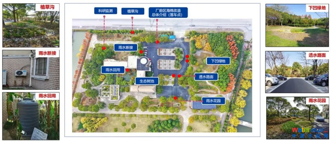 工程新建雨水花園、植草溝、濕地濕塘、生態(tài)停車場、下凹式綠地、透水路面等多種海綿設(shè)施,將石洞口廠打造成自然積存、自然滲透、自然凈化的“海綿城市”。