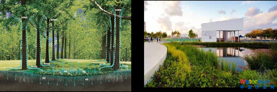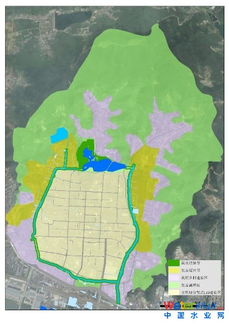 B- 美麗鄉(xiāng)村建設(shè)區(qū):現(xiàn)有村莊,增加LID設(shè)施,建設(shè)凈化濕地,控制村莊地表徑流,減少面源污染。