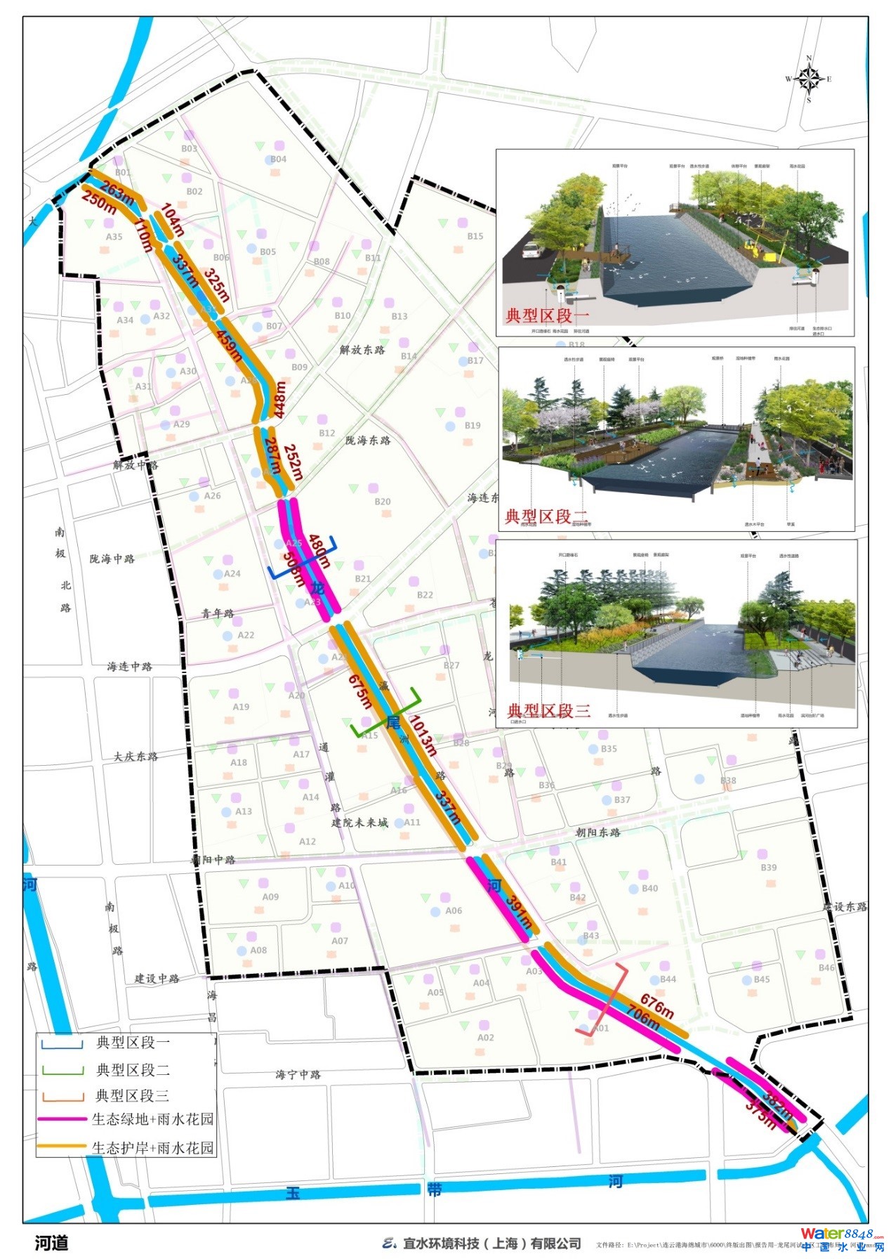 對(duì)龍尾河兩岸的綠化帶進(jìn)行改造,將綠帶寬度大于10m的進(jìn)行駁岸和綠化帶改造,處理河岸兩側(cè)雨水徑流,為超標(biāo)雨洪提供入河行泄路徑,在局部區(qū)域打開駁岸生態(tài)處理,改善水生態(tài)環(huán)境,提高景觀價(jià)值,改造長(zhǎng)度約5.94km,面積59400m2;對(duì)綠帶寬度小于10m的,保留原有河岸,改造綠化帶,增加生物滯留帶,凈化周邊道路雨水徑流,改善區(qū)域生態(tài)微環(huán)境,建設(shè)長(zhǎng)度約2.84km,面積14200m2。