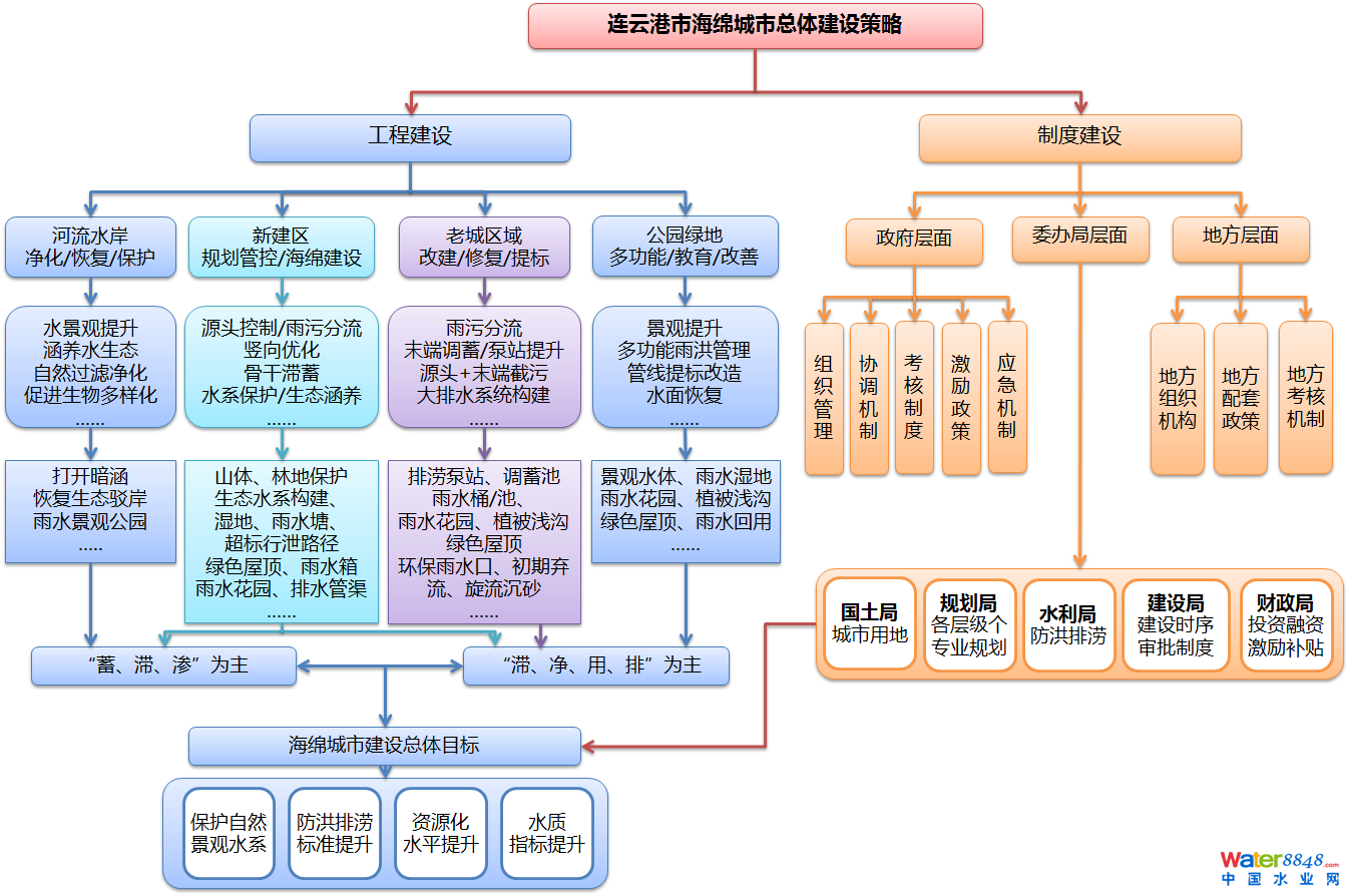 海綿城市建設(shè)是一項(xiàng)系統(tǒng)工程,需統(tǒng)籌協(xié)調(diào)城市各職能部門、開發(fā)建設(shè)各個(gè)環(huán)節(jié),具體包括工程建設(shè)和制度建設(shè)2個(gè)方面。