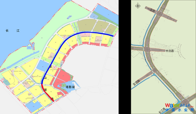 金山湖路位于江蘇省某市北部濱水區(qū)的金山湖風景區(qū),區(qū)域內(nèi)自然環(huán)境優(yōu)美,人文景觀豐富,規(guī)劃以休閑旅游、低密度居住和商務(wù)為主。