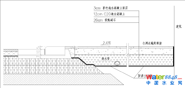 本設(shè)計核心思想是通過海綿化生態(tài)處理設(shè)施的布置,經(jīng)收集、下滲、過濾、調(diào)蓄、排放、溢流的過程管理降雨徑流,體現(xiàn)生態(tài)和排水的雙贏。