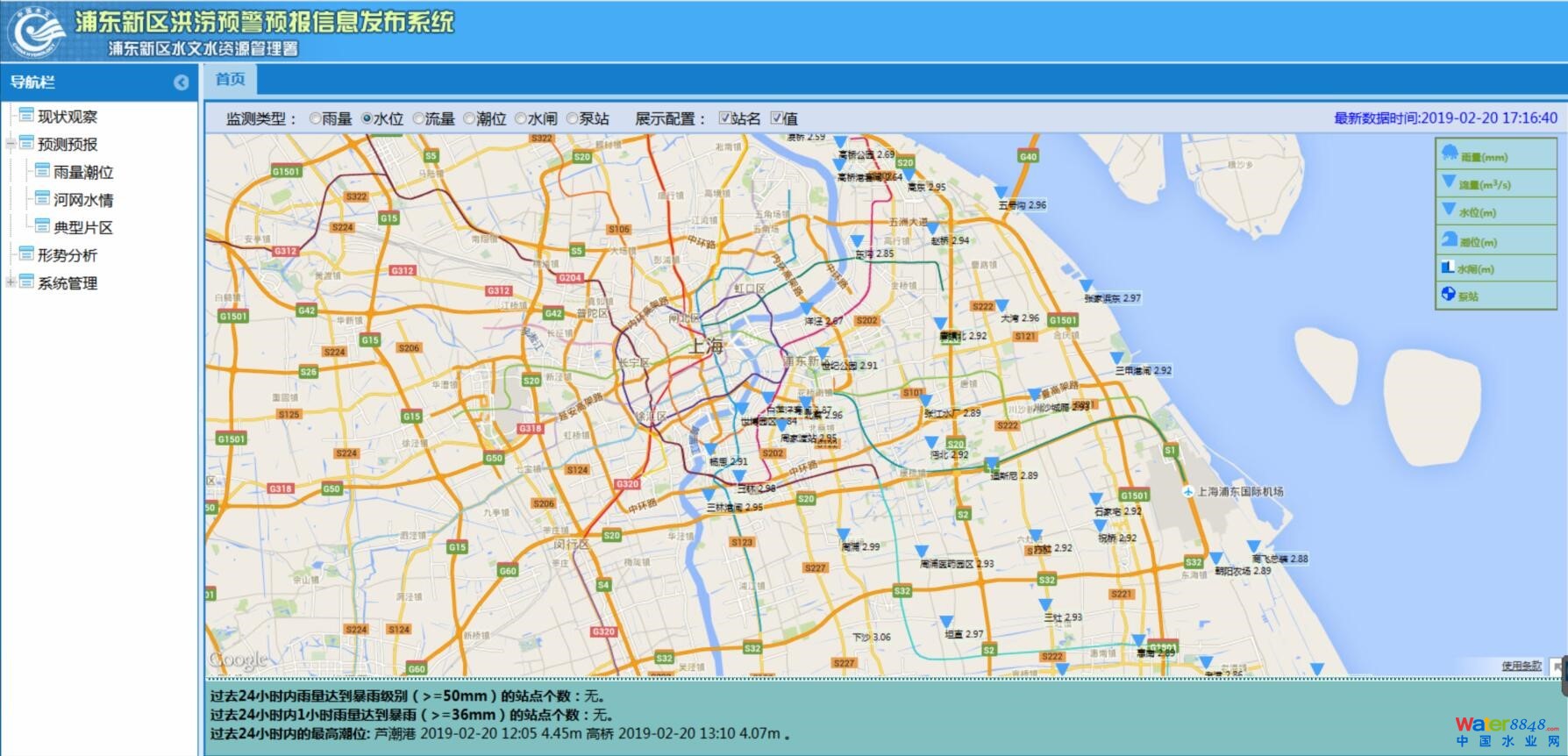 上海市浦東新區(qū)地勢低平,河網(wǎng)密集,排水系統(tǒng)范圍大且復雜,隨著浦東新區(qū)城市加速開發(fā),對防洪排澇風險管理提出了更高要求。另一方面,極端暴雨天氣發(fā)生的時間、程度、特征存在很大的不確定性。目前,主要靠工程投資來緩解防洪排澇問題,但工程設計排澇能力仍然有限,十分缺乏智能體系來支撐決策。本項目借鑒國內(nèi)外先進的水管理理念、良好的技術和豐富的經(jīng)驗,結合浦東實際情況進行系統(tǒng)建設,以浦東水利片感潮平原河網(wǎng)水情和陸家嘴與惠南片區(qū)為對象,對浦東新區(qū)展開針對性的預警平臺系統(tǒng)研發(fā),對研究流域進行內(nèi)澇風險情形的模擬與預報預警。