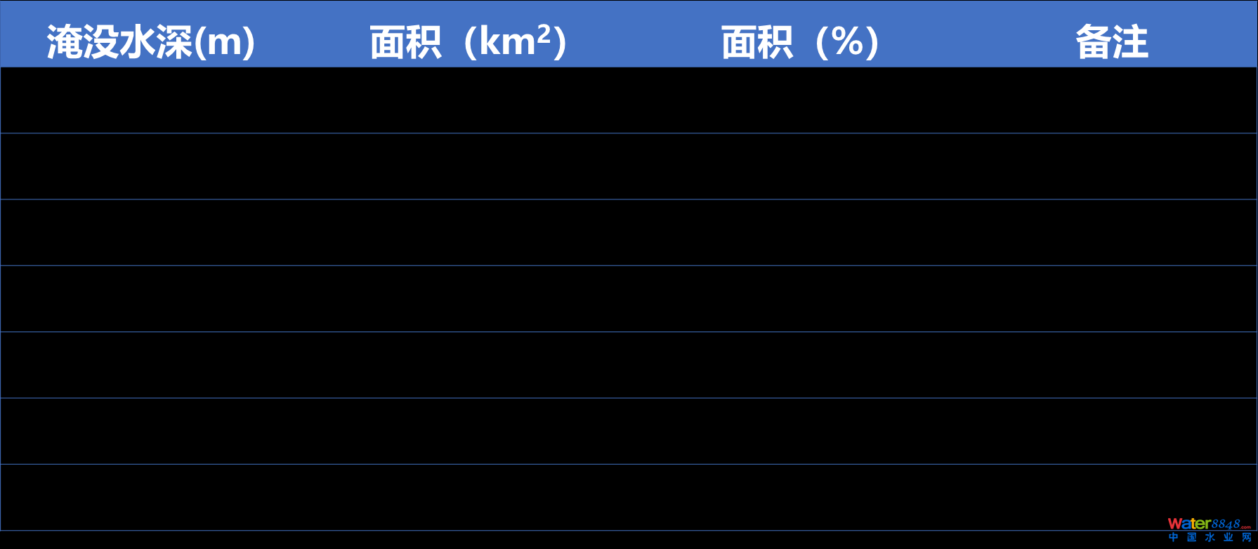 表 1 主城區(qū)洪澇模型積水范圍統(tǒng)計表