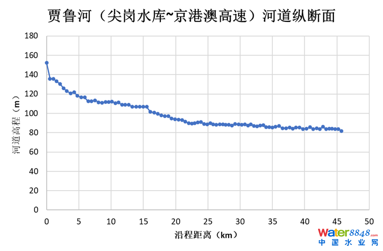 圖 2 賈魯河(尖崗水庫-京港澳高速)河道縱斷面沿線高程(m)