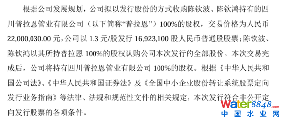 萬安環(huán)境擬以2200萬收購陳欽波、陳欽鴻持有的普拉恩100%的股權(quán)
