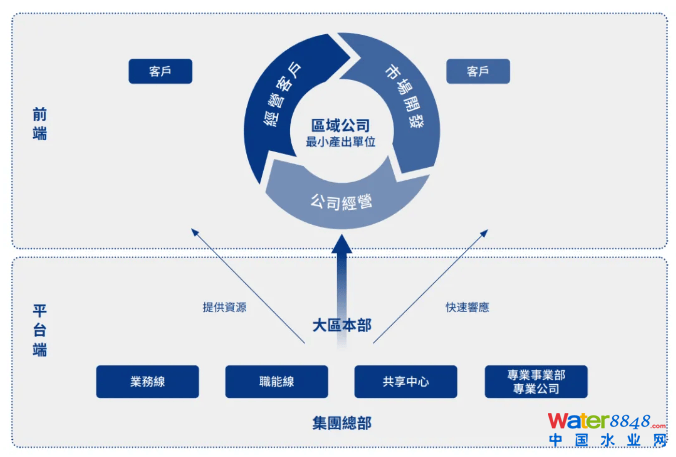 2021年,其啟動了總部中心及區(qū)域改革,構(gòu)建了更貼近市場和客戶的區(qū)域組織,形成「集團(tuán)-大區(qū)-區(qū)域公司」三層架構(gòu)。其組織架構(gòu)是:職能制+有限公司制+事業(yè)部制的綜合型組織架構(gòu)。