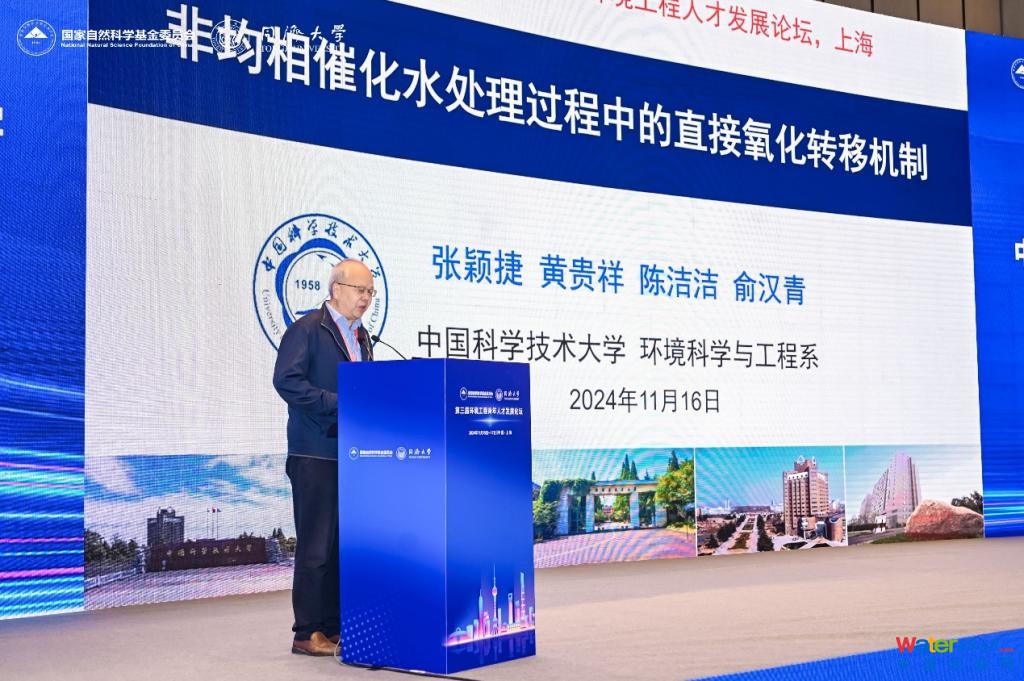 俞漢青院士以《非均相催化水處理過程中的直接氧化轉(zhuǎn)移機制》為題,從現(xiàn)象發(fā)現(xiàn)、機制解析、工程驗證三方面闡述了非均相催化技術發(fā)展過程,講述了如何從工程實踐中提煉出關鍵科學問題并加以持續(xù)深入研究。