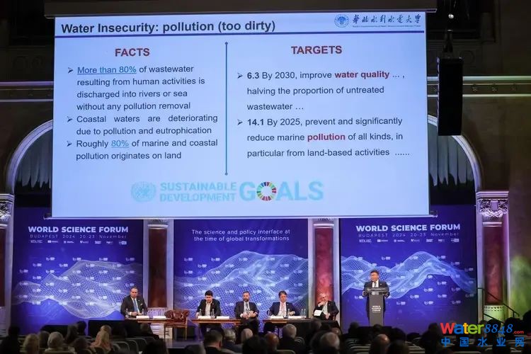 大會(huì)期間,華北水利水電大學(xué)于11月20日在匈牙利布達(dá)佩斯的辛科維茨·伊姆雷劇院成功舉辦了2024年世界科學(xué)論壇“水-糧-能紐帶關(guān)系促進(jìn)可持續(xù)發(fā)展”主題邊會(huì)。劉俊國(guó)校長(zhǎng)主持會(huì)議并作主旨報(bào)告,題為“水-糧-能紐帶關(guān)系促進(jìn)可持續(xù)發(fā)展”。荷蘭IHE代爾夫特水教育學(xué)院校長(zhǎng)Eddy Moors教授、日本國(guó)際水災(zāi)害與風(fēng)險(xiǎn)管理中心主任Toshio Koike教授等多位國(guó)際知名專家作專題報(bào)告,圍繞水利科學(xué)前沿研究與國(guó)際科研合作,就推進(jìn)科學(xué)研究、加強(qiáng)科學(xué)領(lǐng)域協(xié)同、加速實(shí)施《2030年可持續(xù)發(fā)展議程》等議題展開了多邊主題討論。