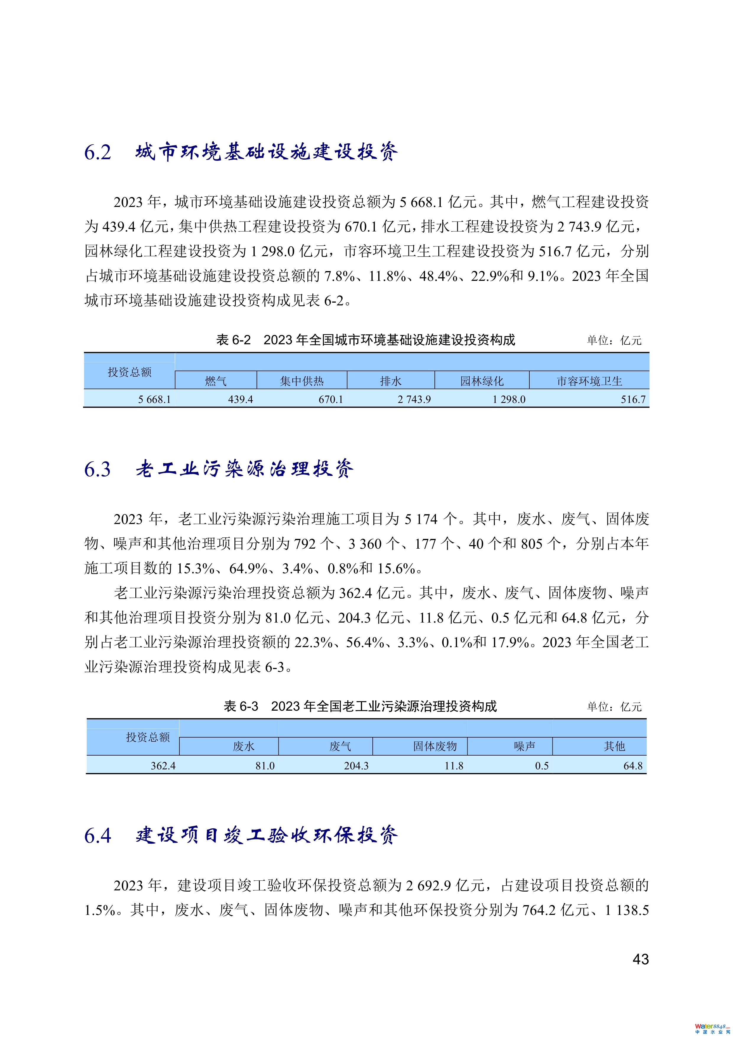 核心提示:全文 | 2023年中國生態(tài)環(huán)境統(tǒng)計年報 2025-01-06 15:41來源:生態(tài)環(huán)境部