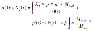 式中, ρ(Dis-N2O)為以N計單位體積溶解態(tài)N2O濃度(mg·L-1), K0為亨利定律常數(shù)[mol·(L·Pa)-1]. p為氣體壓強(Pa). ρ'(Gas-N2O)為N2O在上部空間的濃度(mg·L-1), 計算同式(1). β為頂空瓶上部空間體積和水樣體積的比值, MN2O為N2O分子中N的摩爾質(zhì)量(g·mol-1).