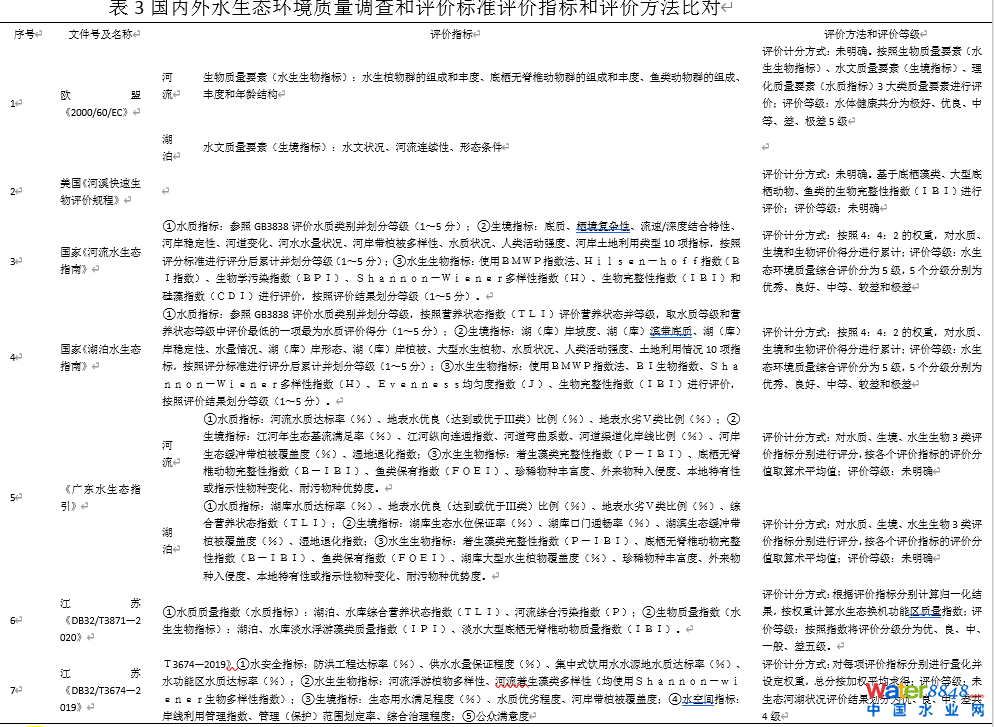 3 國(guó)內(nèi)外水生態(tài)環(huán)境質(zhì)量調(diào)查和評(píng)價(jià)標(biāo)準(zhǔn)比對(duì)