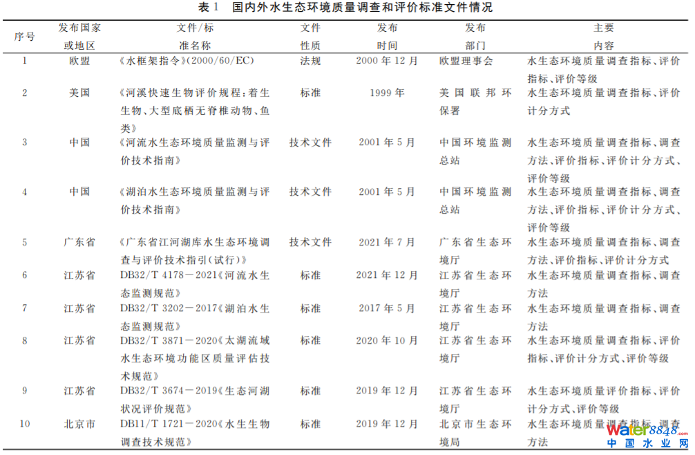 2 國(guó)內(nèi)外水生態(tài)環(huán)境質(zhì)量調(diào)查和評(píng)價(jià)法規(guī)標(biāo)準(zhǔn)情況