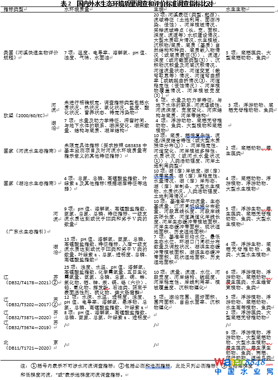 2.2 水生態(tài)環(huán)境質(zhì)量調(diào)查指標(biāo)比對(duì)