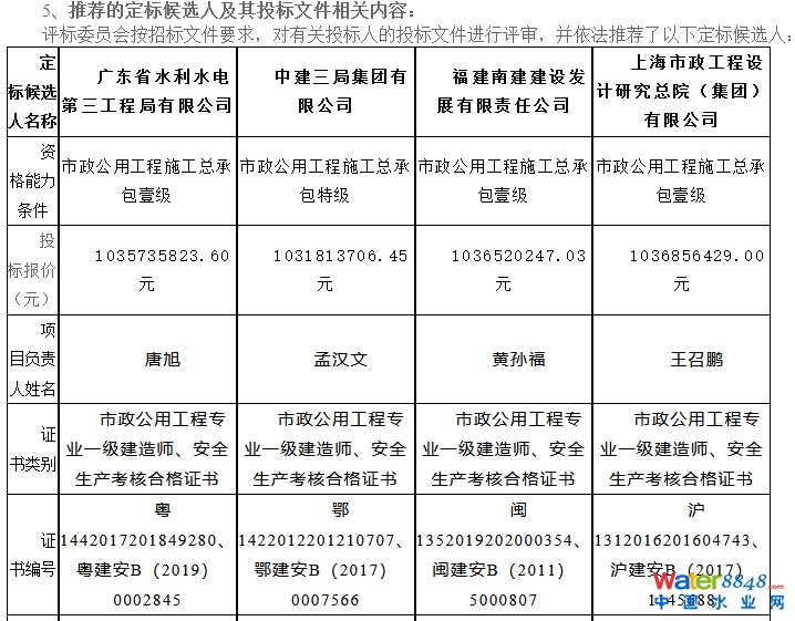 定標(biāo)候選人一:廣東省水利水電第三工程局有限公司,投標(biāo)報(bào)價(jià):1035735823.60元;