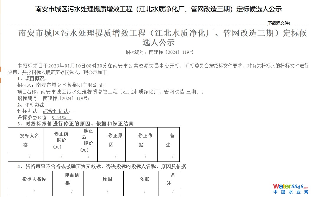 11億!福建南安市城區(qū)污水處理提質(zhì)增效工程(江北水質(zhì)凈化廠、管網(wǎng)改造三期)開標(biāo)
