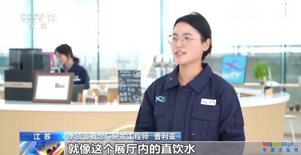 水資源概念廠研發(fā)工程師 曹利亞:就像這個(gè)展廳內(nèi)的直飲水,以及泡咖啡的水,都是來源于處理后的尾水。