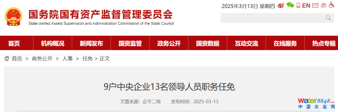3月13日,國務(wù)院國有資產(chǎn)監(jiān)督管理委員會發(fā)布《9戶中央企業(yè)13名領(lǐng)導(dǎo)人員職務(wù)任免》。