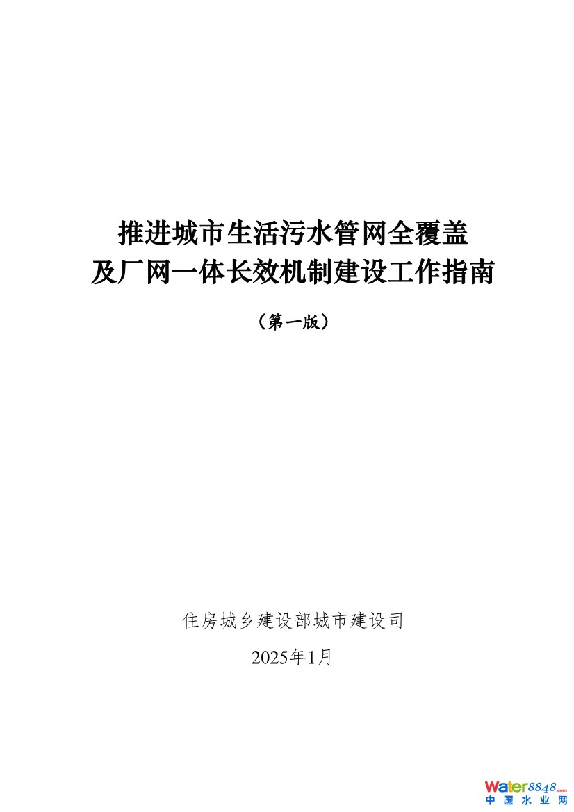 住建部印發(fā)《推進城市生活污水管網全覆蓋及廠網一體長效機制建設工作指南(第一版)》