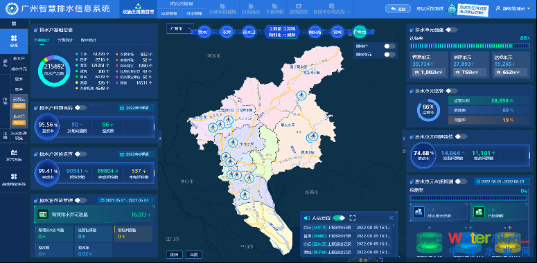 廣州“智慧排水”項目,該項目總投資3.58億,項目規(guī)模覆蓋廣州市全域,涉及3.5萬公里排水管網(wǎng)、64座污水處理廠、105個排澇片、977個雨水分區(qū)、39734個排水單元。