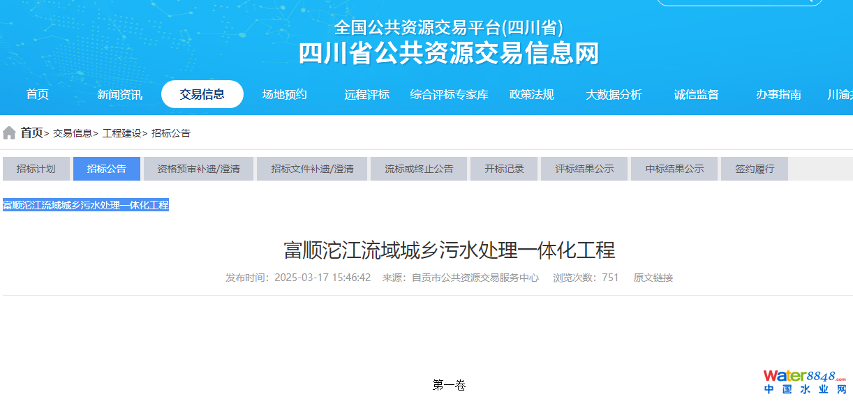 約2億!自貢市富順沱江流域城鄉(xiāng)污水處理一體化工程開始招標(biāo)