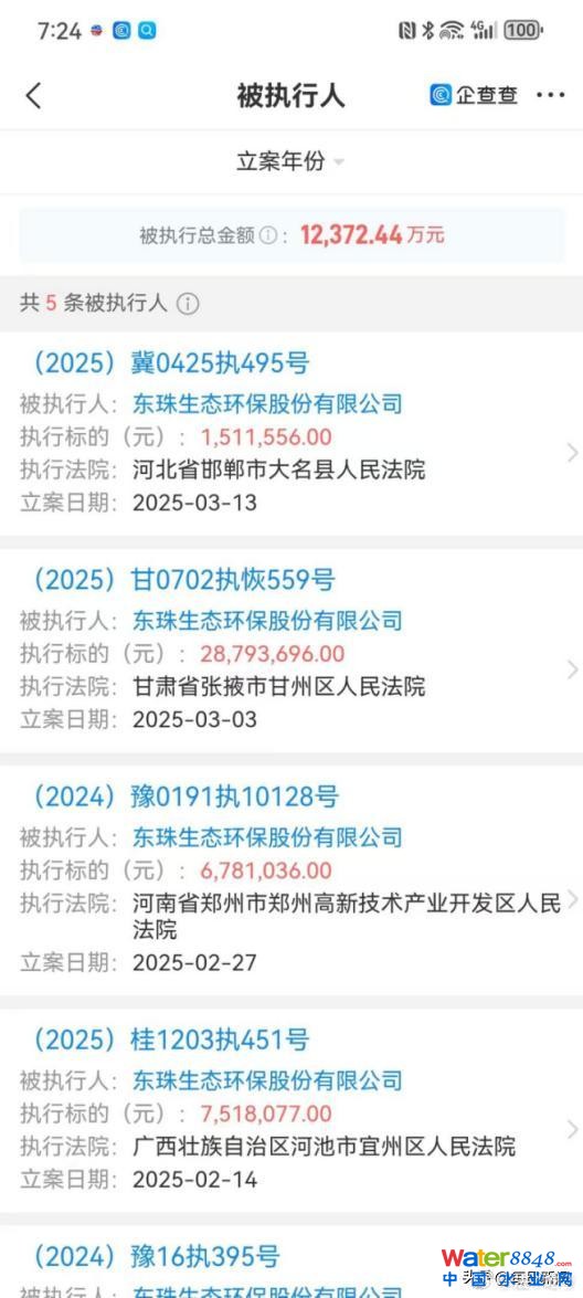 由于支付能力削弱,自2024年10月,東珠生態(tài)被多家法院列入被執(zhí)行人名單,被執(zhí)行總金額12372.44萬(wàn)元。另外,東珠生態(tài)還涉及多起民事訴訟,有待法院進(jìn)一步裁決。