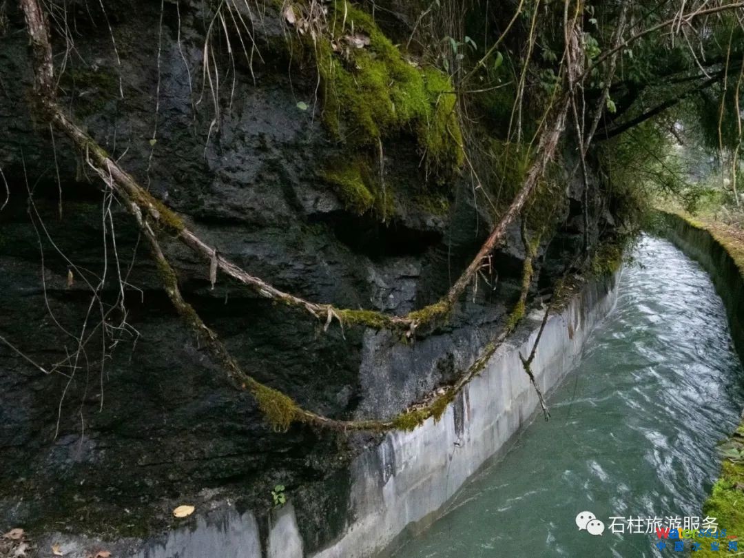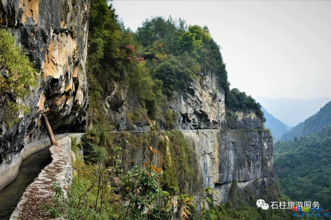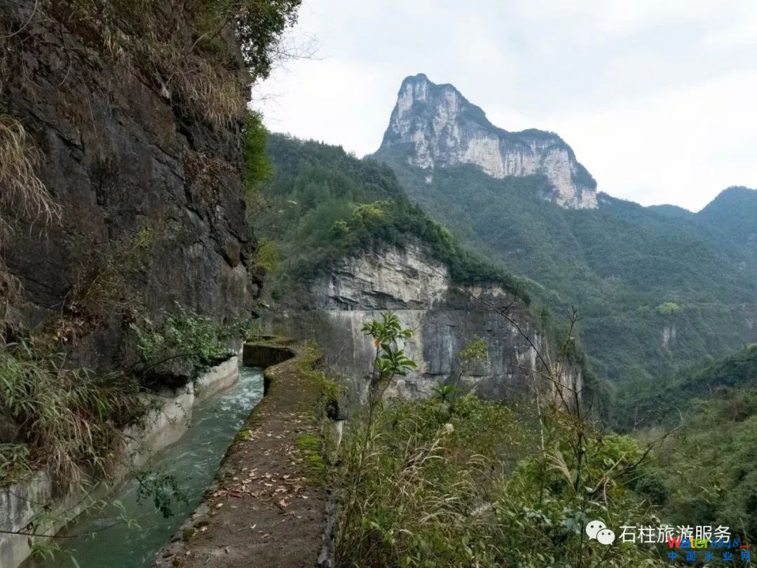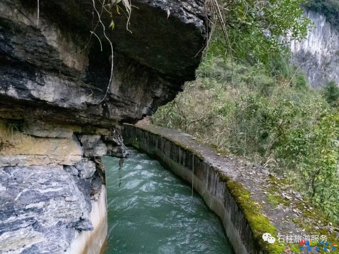 就在林縣人書寫這一傳奇之后,石柱縣黃鶴鎮(zhèn)(當初叫黃鶴鄉(xiāng))鷹嘴巖大峽谷中,黃鶴兒女歷時5年,也在懸崖絕壁上鑿出了一條15.3公里長的引水渠,至今清流涓涓,灌溉、飲用、發(fā)電,滋養(yǎng)著沿線村落,保證了1336畝干旱田地的有效灌溉。