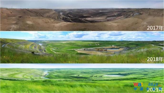圖片說明:中國固廢公司資源化處理前后的礦山景象對比。