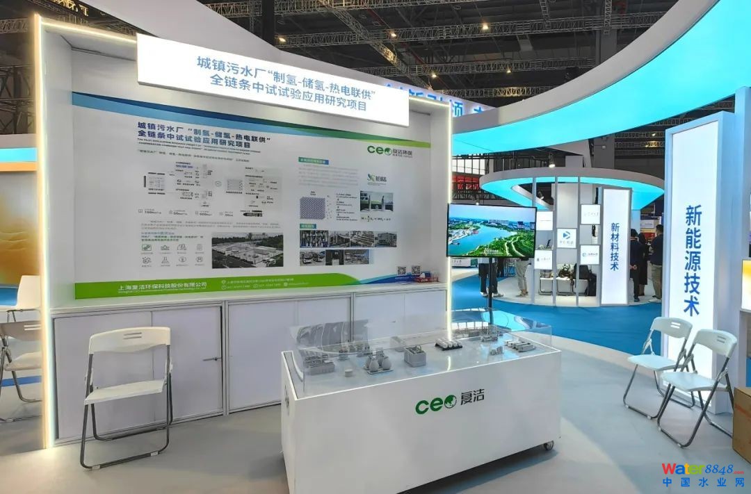 在工博會“創(chuàng)新科技館”的新能源技術(shù)板塊,作為國內(nèi)首家以污泥處理為主營業(yè)務(wù)的科創(chuàng)板上市企業(yè),復(fù)潔環(huán)保的“城鎮(zhèn)污水廠‘制氫-儲氫-熱電聯(lián)供’全鏈條中試試驗應(yīng)用研究項目”引起了現(xiàn)場參觀者關(guān)注。