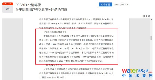 現(xiàn)在標的公司按照前述批復內(nèi)容積極與各級主管部門協(xié)商確定補貼單價,目前市級及區(qū)級主管部門就餐飲垃圾收集運輸處置費分擔問題尚在協(xié)商過程中。