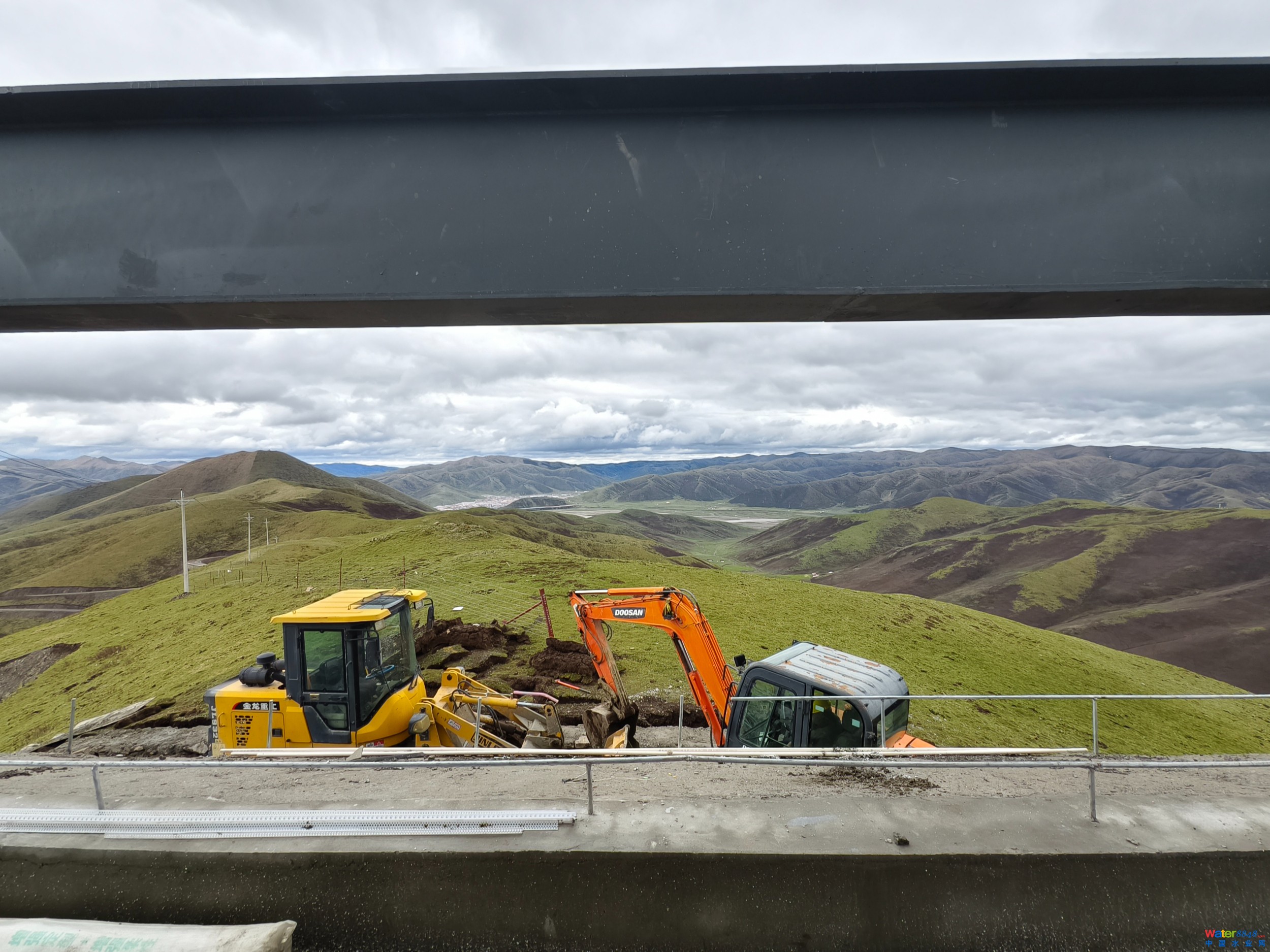 只見施工隊推著砂石運輸車穿梭忙碌,機器轟鳴聲在海拔4465米的哇英山上回蕩。
