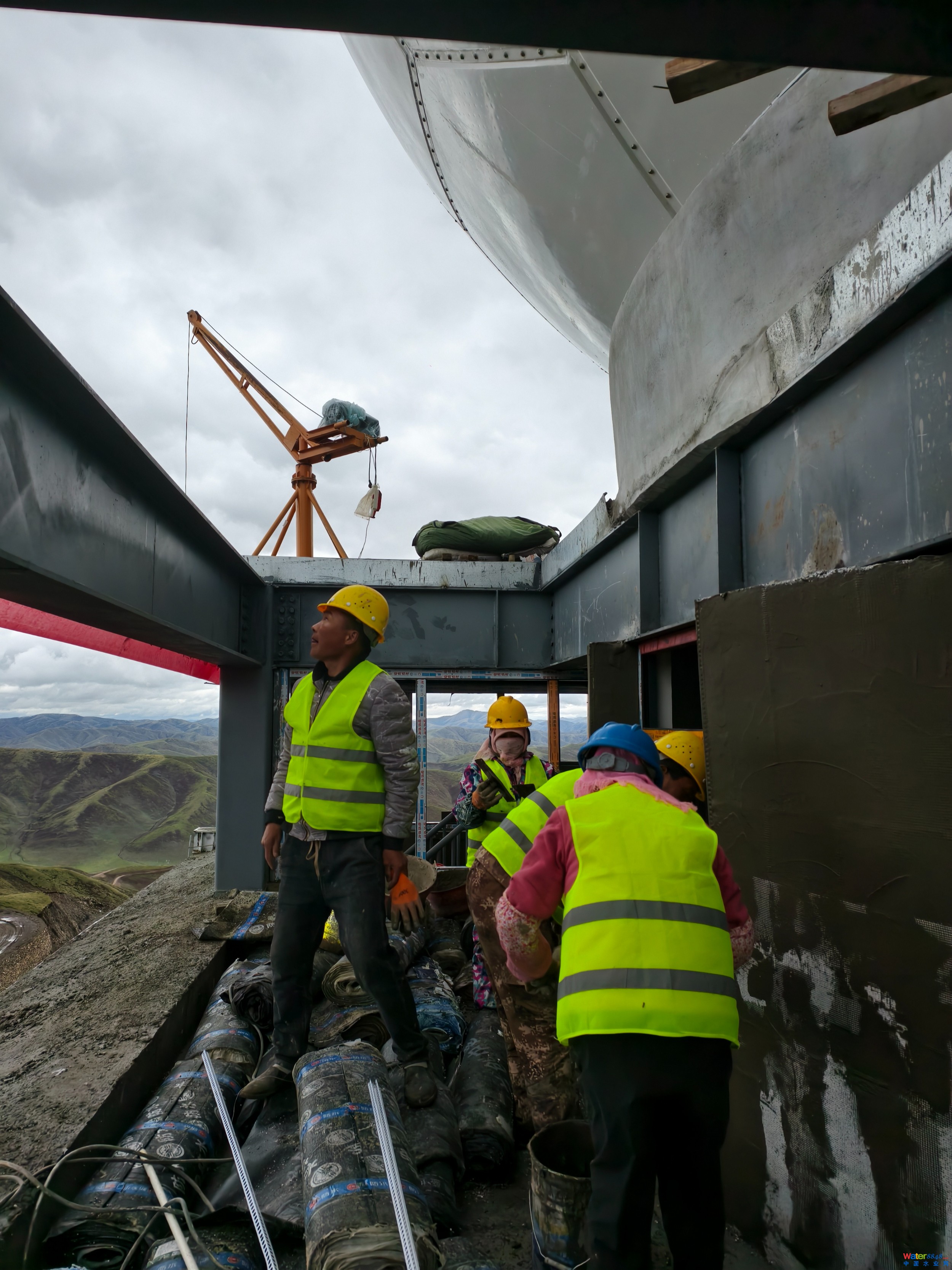 工人們短暫放下手中的活計,目光越過工地,望向終年積雪的阿尼瑪卿雪山——這座“中華水塔”的圣潔屏障,讓他們想起即將完工的果洛新一代天氣雷達項目。想到這里,他們抖擻精神,迅速投入緊張作業(yè)。