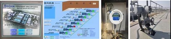 曝氣控制系統(tǒng)界面、風量控制界面、生物池現(xiàn)場壓力表、生物池風量電動閥門