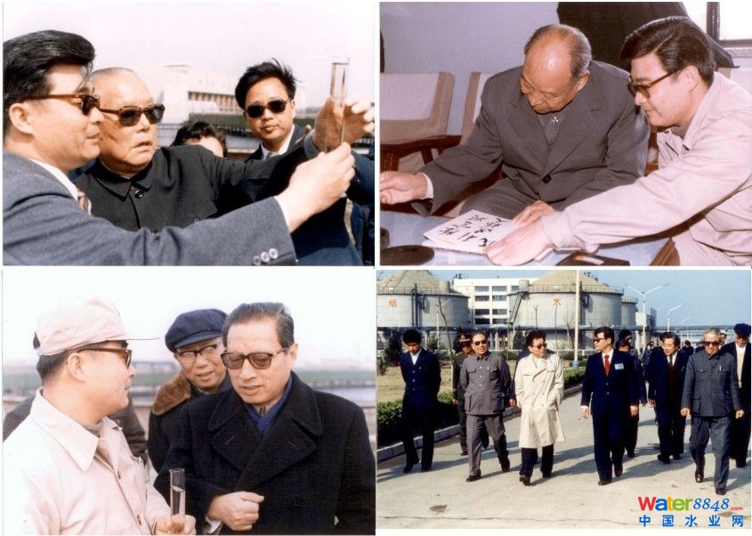 左上:1986年原國家主席李先念在天津紀莊子污水處理廠視察工作