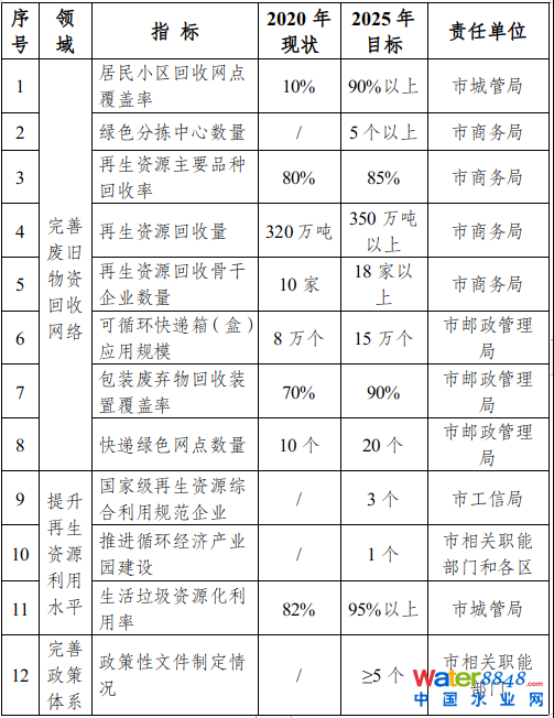 南京市廢舊物資循環(huán)利用體系建設(shè)目標(biāo)表