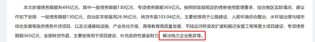 值得注意的是,云南省除了安排356億元用于解決地方政府拖欠企業(yè)賬款以外,用于補(bǔ)充政府性基金財(cái)力的新增專(zhuān)項(xiàng)債務(wù)額度369億元,也可部分用于解決拖欠企業(yè)賬款。