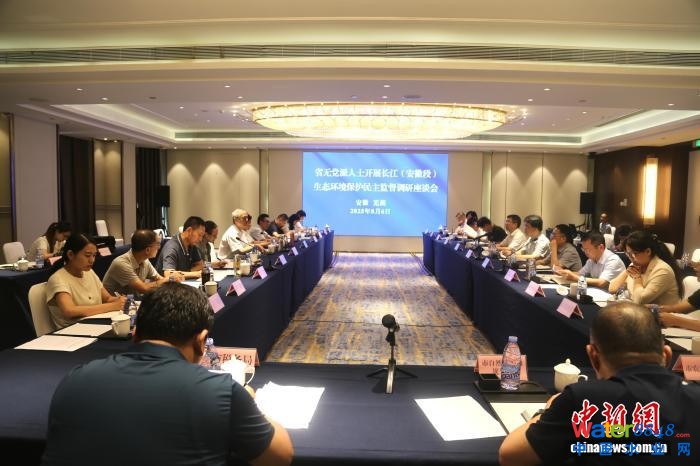 8月6日,安徽省無黨派人士長(zhǎng)江(安徽段)生態(tài)環(huán)境保護(hù)民主監(jiān)督調(diào)研組在蕪湖市開展調(diào)研座談會(huì)。圖為座談會(huì)現(xiàn)場(chǎng)。傅天騁 攝