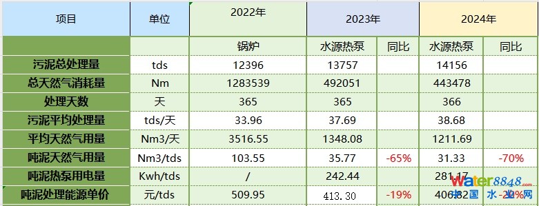(3)通過(guò)低溫真空脫水干化一體化技術(shù)裝備,污泥含水率由98%降至40%以下,有效減少了污泥體積,降低了污泥后續(xù)處理處置過(guò)程中的間接碳排放。